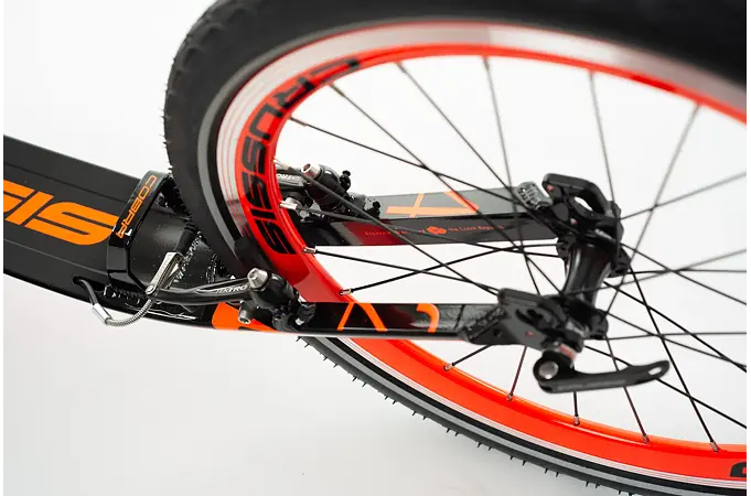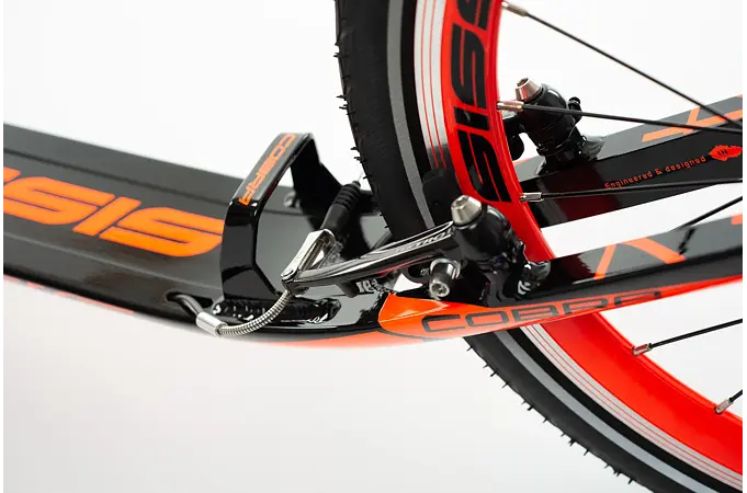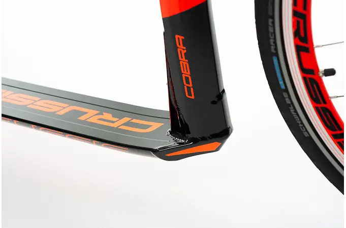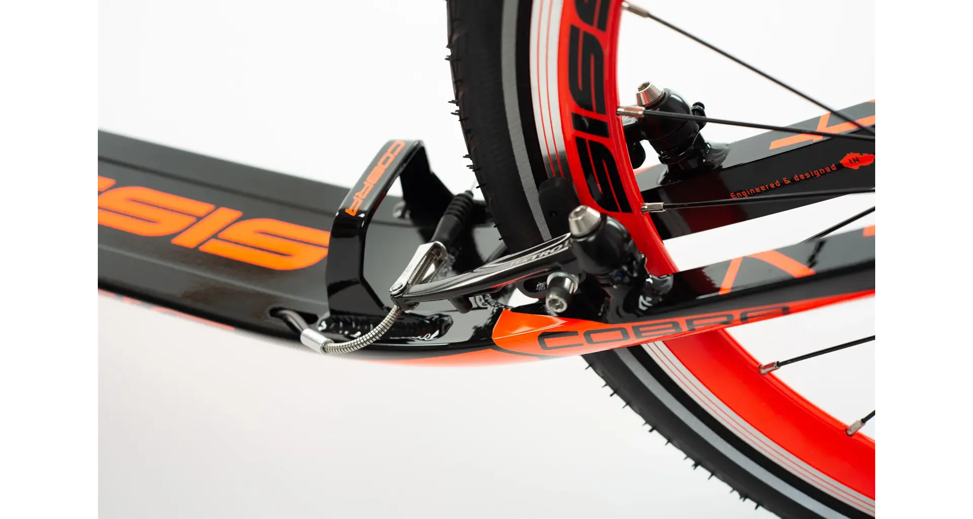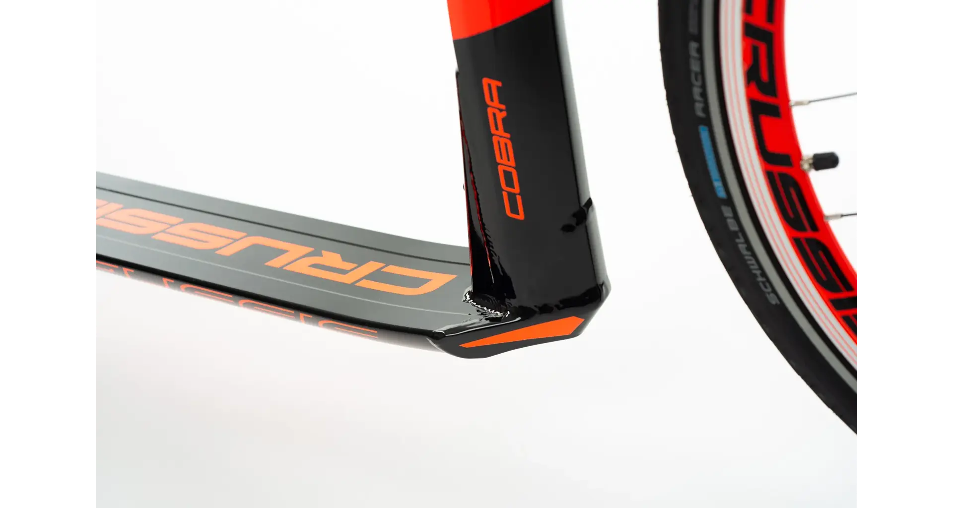 Unikátní hliníkový rám koloběžek Crussis Cobra byl vyvinut tak, aby se zadní vidlicí tvořil jeden celek. To eliminuje únavové lomy v místech, kde je vidlice ke stupátku obvykle přivařena. Kónický tvar hlavové trubky spolu s trojúhelníkovým profilem krku zvyšuje pevnost rámu.