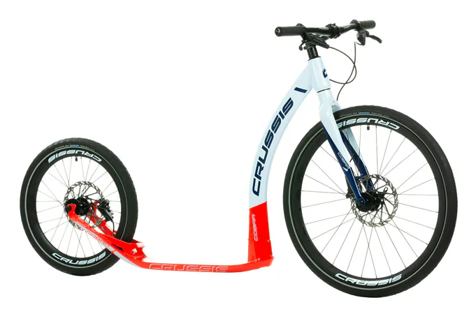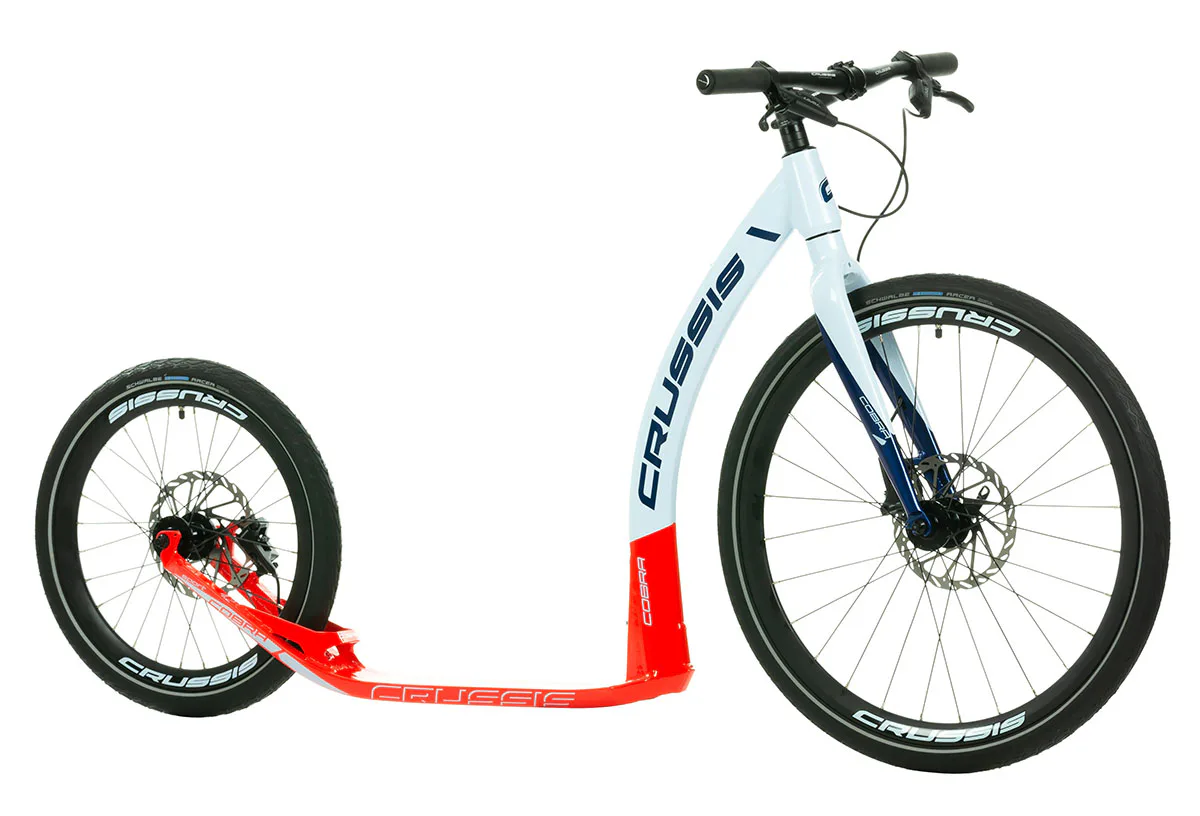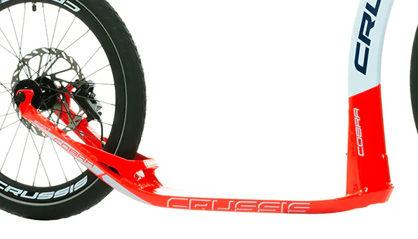Unikátní hliníkový rám koloběžek Crussis Cobra Sport 4.2-4 byl vyvinut tak, aby se zadní vidlicí tvořil jeden celek. To eliminuje únavové lomy v místech, kde je vidlice ke stupátku obvykle přivařena. Kónický tvar hlavové trubky spolu s trojúhelníkovým profilem krku zvyšuje pevnost rámu.