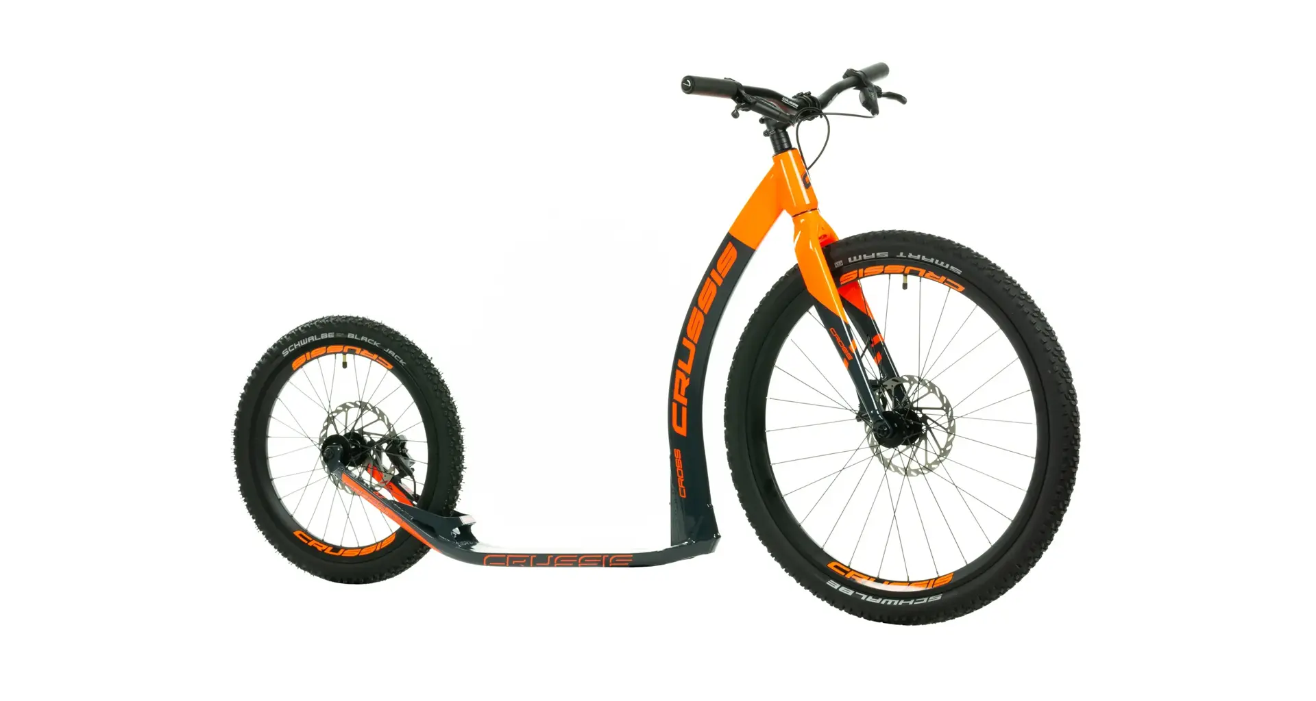 Unikátní hliníkový rám koloběžek Crussis Cross Hard byl vyvinut tak, aby se zadní vidlicí tvořil jeden celek. To eliminuje únavové lomy v místech, kde je vidlice ke stupátku obvykle přivařena. Kónický tvar hlavové trubky spolu s trojúhelníkovým profilem krku zvyšuje pevnost rámu.