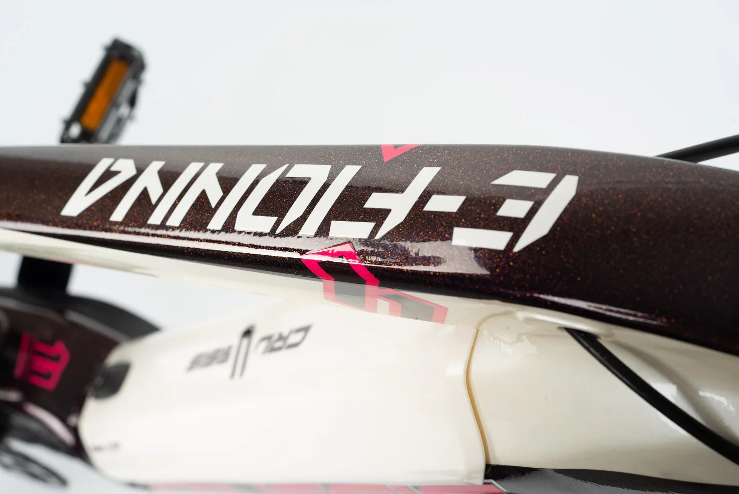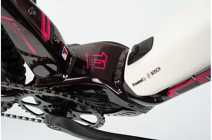 Model disponuje 17" rámem s moderním designem z hliníku, baterií integrovanou v rámu a výkonným pohonem ve středu rámu.