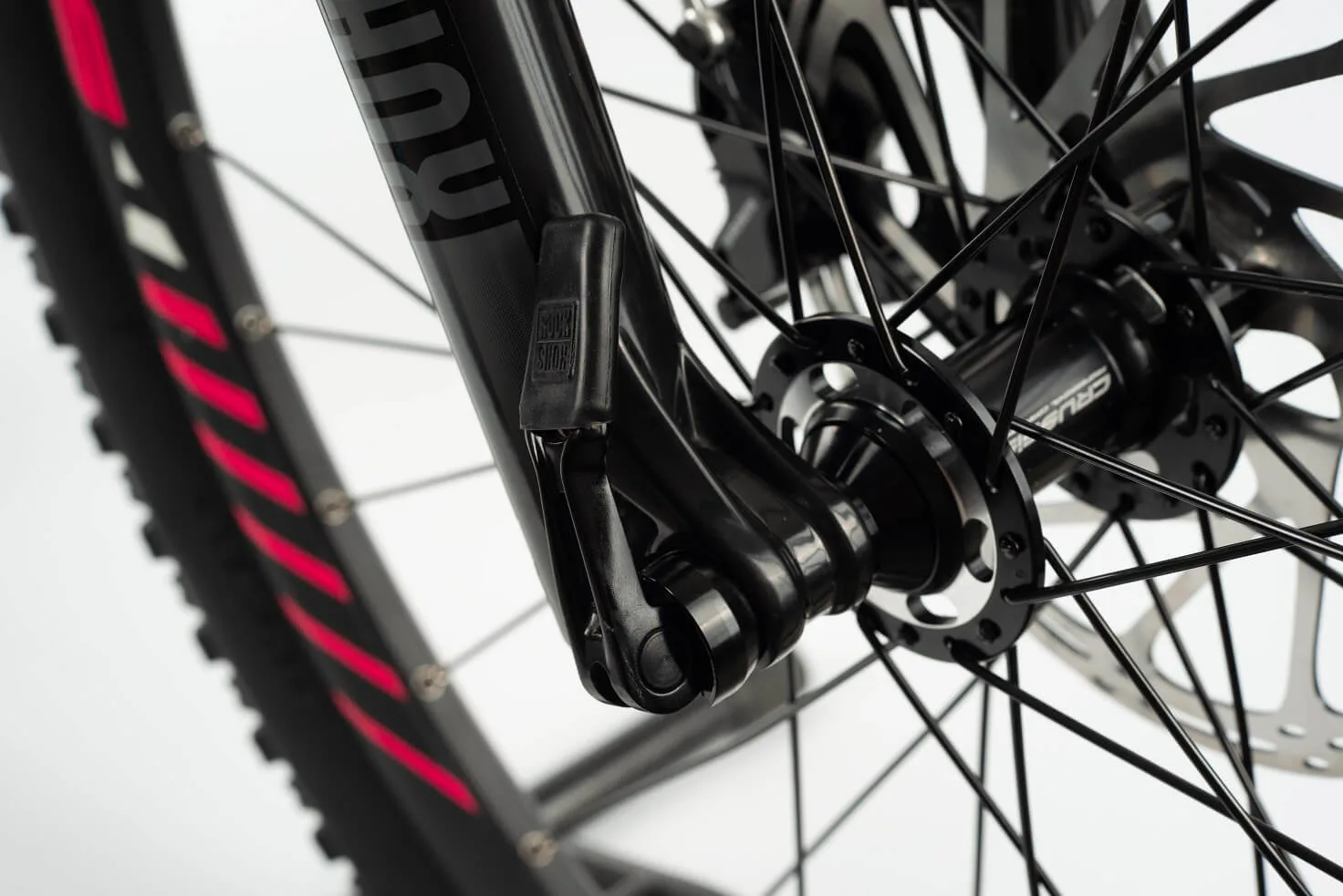 Dobře nastavená vidlice pak skvěle tlumí nárazy při jízdě v terénu, zatímco na rovném povrchu zbytečně „nepropružuje.“ Pružení je možné uzamknout pomocí uzavírání z korunky vidlice.