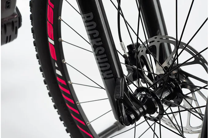 Dobře nastavená vidlice pak skvěle tlumí nárazy při jízdě v terénu, zatímco na rovném povrchu zbytečně „nepropružuje.“ Pružení je možné uzamknout pomocí uzavírání z korunky vidlice.