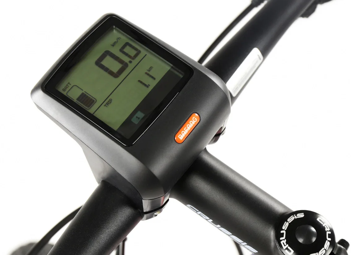 Přehledný černobílý LCD displej zobrazuje kromě základních informací týkajících se stavu baterie a aktuálně využívaného stupně asistence také další údaje týkající se jízdy (rychlost, ujetá vzdálenost aj.).