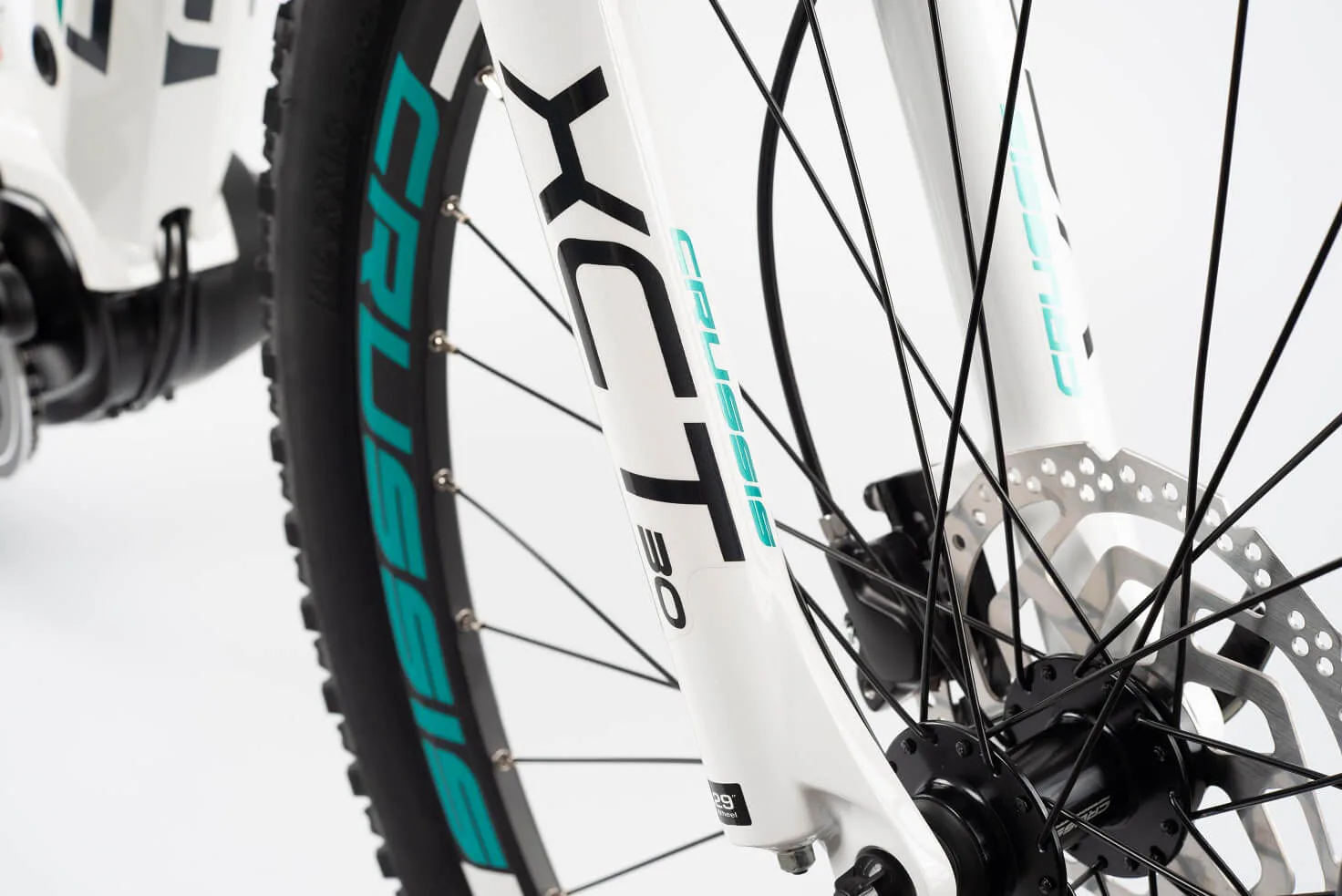 Crussis e-Fionna 5.7 je vybaveno odpruženou vidlicí s pružinovým tlumením SUNTOUR XCT30 HLO DS 29" se zdvihem 100 mm, která je skvěle přizpůsobivá váze cyklisty.