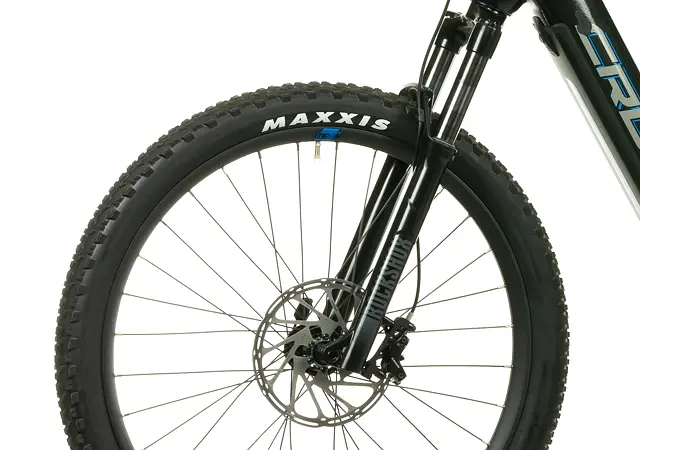 Komfort zajišťuje vyladěná geometrie a také bohatá základní výbava s odpruženou vidlicí s pružinovým tlumením, kotoučovými brzdami a stabilními 27,5“ zapletenými koly.