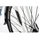 Komfort zajišťuje vyladěná geometrie a také bohatá základní výbava s odpruženou vidlicí, s čelisťovými brzdami a stabilními 28“ zapletenými koly.