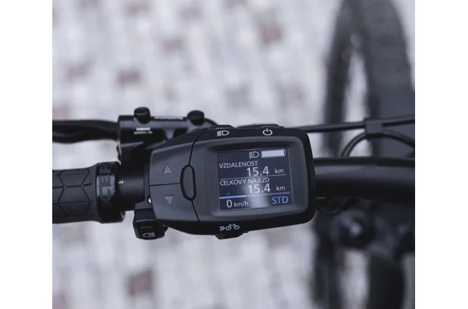 Ovládejte své elektrokolo barevným LCD displejem od PANASONIC, umístěným na levé straně řídítek. Elegantně navržený displej je vybaven USB portem pro pohodlné nabíjení vašeho telefonu.