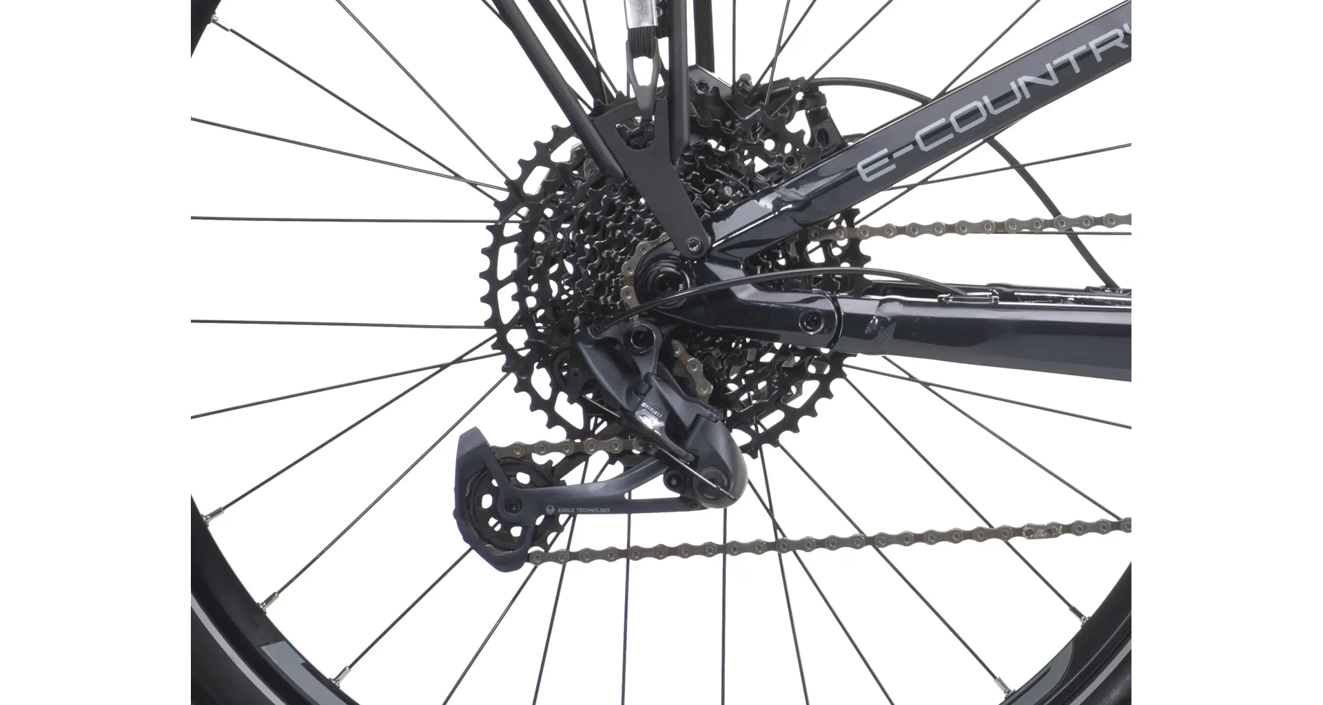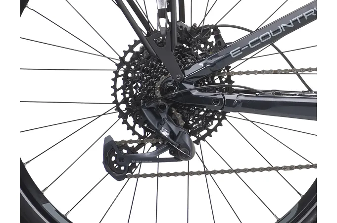 Elektrokolo e-Country full 10.10 disponuje 19,5" rámem s moderním designem z hliníku, baterií integrovanou v rámu a výkonným pohonem ve středu rámu.
