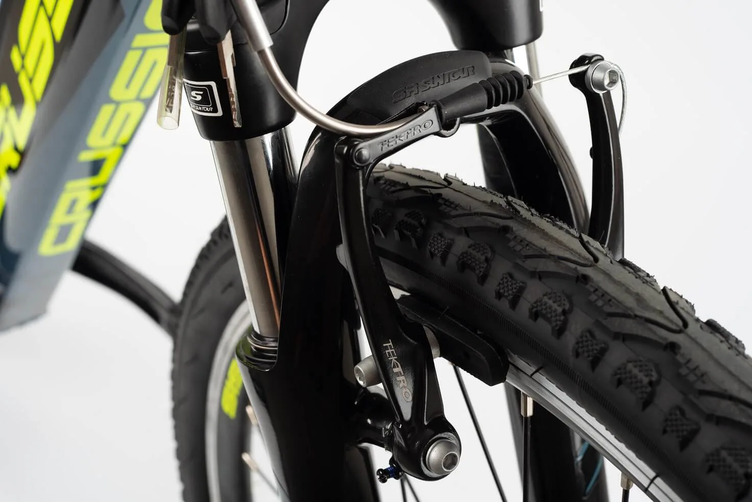 O řazení se stará 21 rychlostí sady Shimano Tourney a jízdní komfort vám zpříjemní odpružená vidlice Suntour CR7-V 700C, no lock.