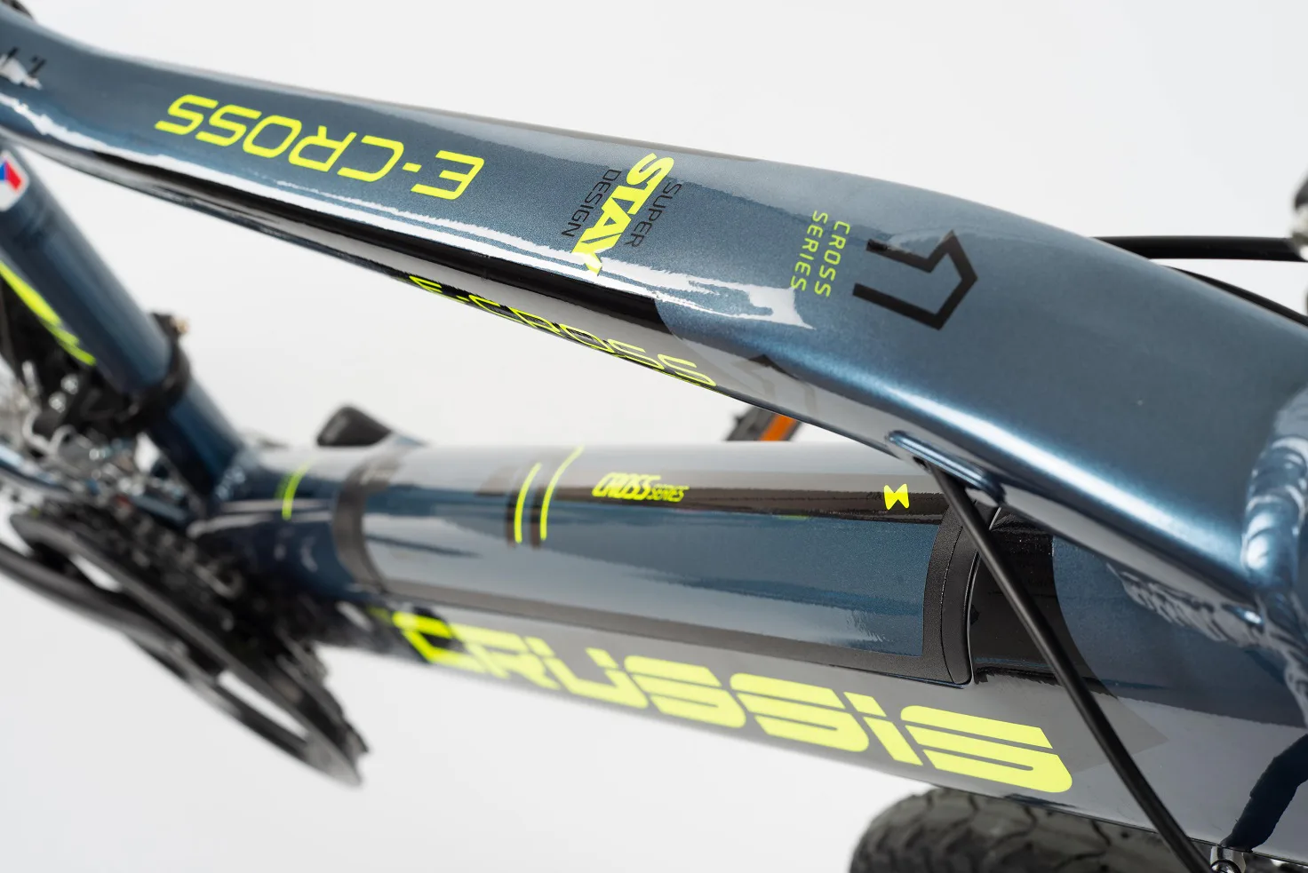 Model CRUSSIS e-Cross 1.7 patří mezi oblíbená treková elektrokola značky CRUSSIS určené především pro pány! Vyniká svoji integrovanou baterii přímo v rámu, takže není nijak narušený design kola a zajišťuje maximální komfort a ovladatelnost při jízdě jak v nízké, tak i vysoké rychlosti. Kapacita baterie se liší dle zvolené varianty – základní (13 Ah) nebo S (17,5 Ah).