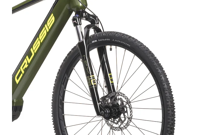 Crussis e-Cross 7.10 je vybaveno odpruženou vidlicí s pružinovým tlumením SUNTOUR NEX HLO DS 700c se zdvihem 63 mm, která je skvěle přizpůsobivá váze cyklisty.