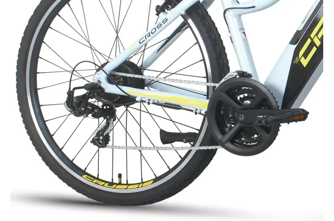Model CRUSSIS e-Cross Low 1.8 patří mezi oblíbená treková elektrokola značky CRUSSIS určené především pro dámy! Vyniká svoji integrovanou baterii přímo v rámu, takže není nijak narušený design kola a zajišťuje maximální komfort a ovladatelnost při jízdě jak v nízké, tak i vysoké rychlosti. Kapacita baterie se liší dle zvolené varianty – základní (13 Ah) nebo S (17,5 Ah).