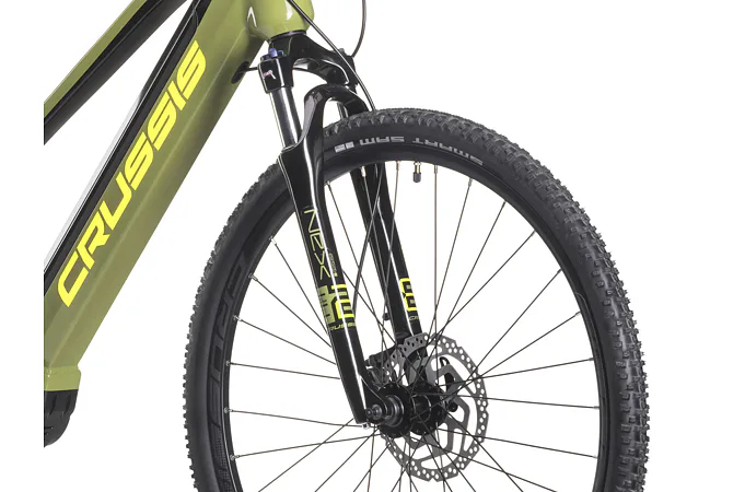 Crussis e-Cross low 7.10 je vybaveno odpruženou vidlicí s pružinovým tlumením SUNTOUR NEX HLO DS 700c se zdvihem 63 mm, která je skvěle přizpůsobivá váze cyklisty.