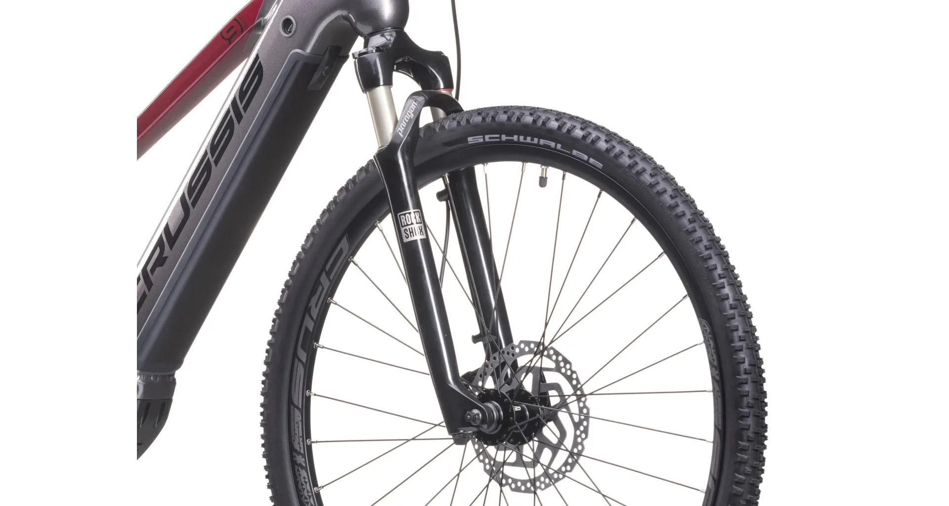Crussis e-Cross Low 9.10 je vybaveno odpruženou vidlicí se vzduchovým tlumením ROCKSHOX FS Paragon Gold RL R Solo Air 700c se zdvihem 65 mm, která se skvěle přizpůsobí váze cyklisty. Jednoduchým systémem si změníte tlak vzduchu ve vidlici a e-bike plně přizpůsobíte vaší váze a stylu jízdy.