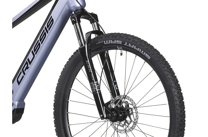 Crussis e-Fionna 7.10 je vybaveno odpruženou vidlicí s pružinovým tlumením SUNTOUR XCM32 NLO DS 29" se zdvihem 100 mm, která je skvěle přizpůsobivá váze cyklisty.