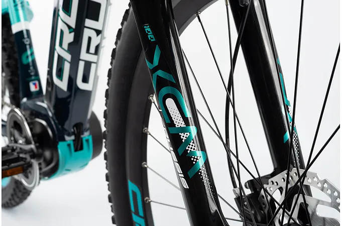 CRUSSIS e-Fionna 7.7 je vybaveno odpruženou vidlicí s pružinovým tlumením SUNTOUR XCM HLO DS 29" se zdvihem 100 mm, která je skvěle přizpůsobivá váze cyklisty.