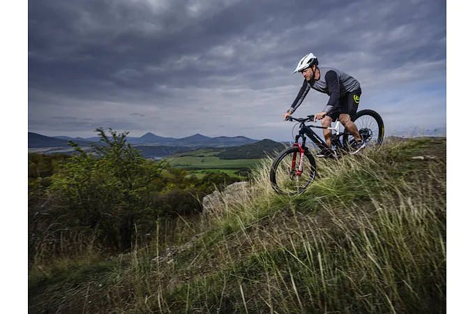 Komfort zajišťuje vyladěná geometrie a také bohatá základní výbava s odpruženou vidlicí a tlumičem ROCKSHOX, brzdami SHIMANO a stabilními 29“ zapletenými koly.