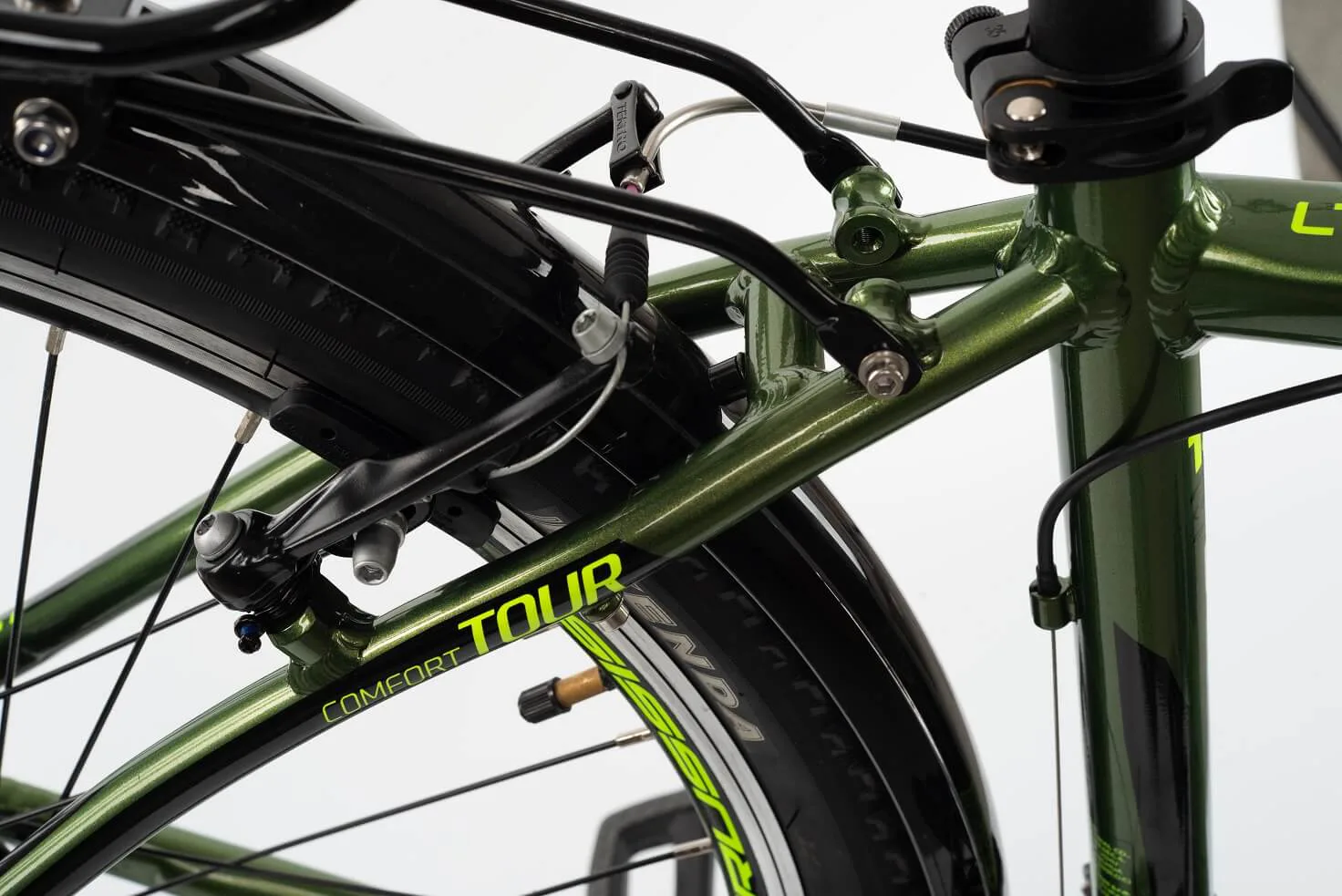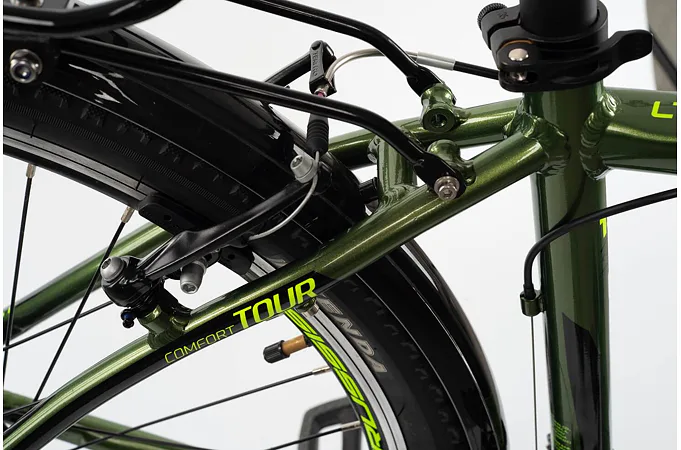 Komfort vám zpříjemní vyladěná geometrie a také bohatá základní výbava s odpruženou vidlicí s pružinovým tlumením, kotoučovými brzdami a stabilními 28“ zapletenými koly.