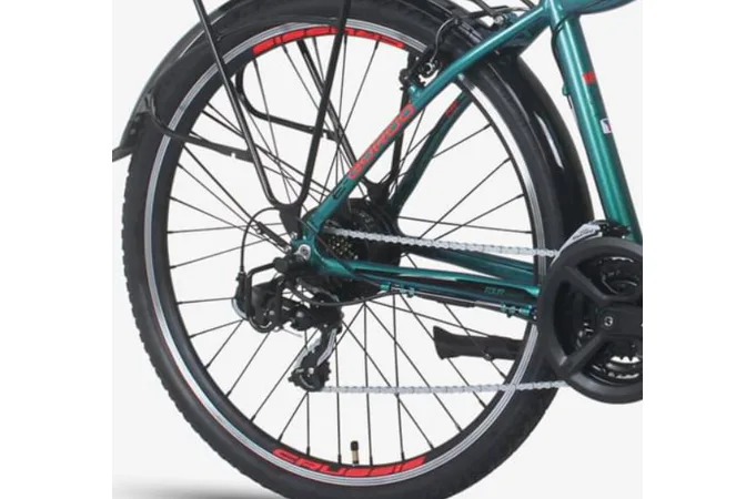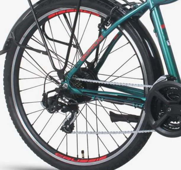 O řazení se stará 21 rychlostí sada Shimano Tourney s 3 převody v předu a 7 vzadu. Zvolený převodový stupeň snadno poznáte na řadící páčce s ukazatelem.