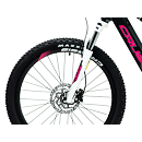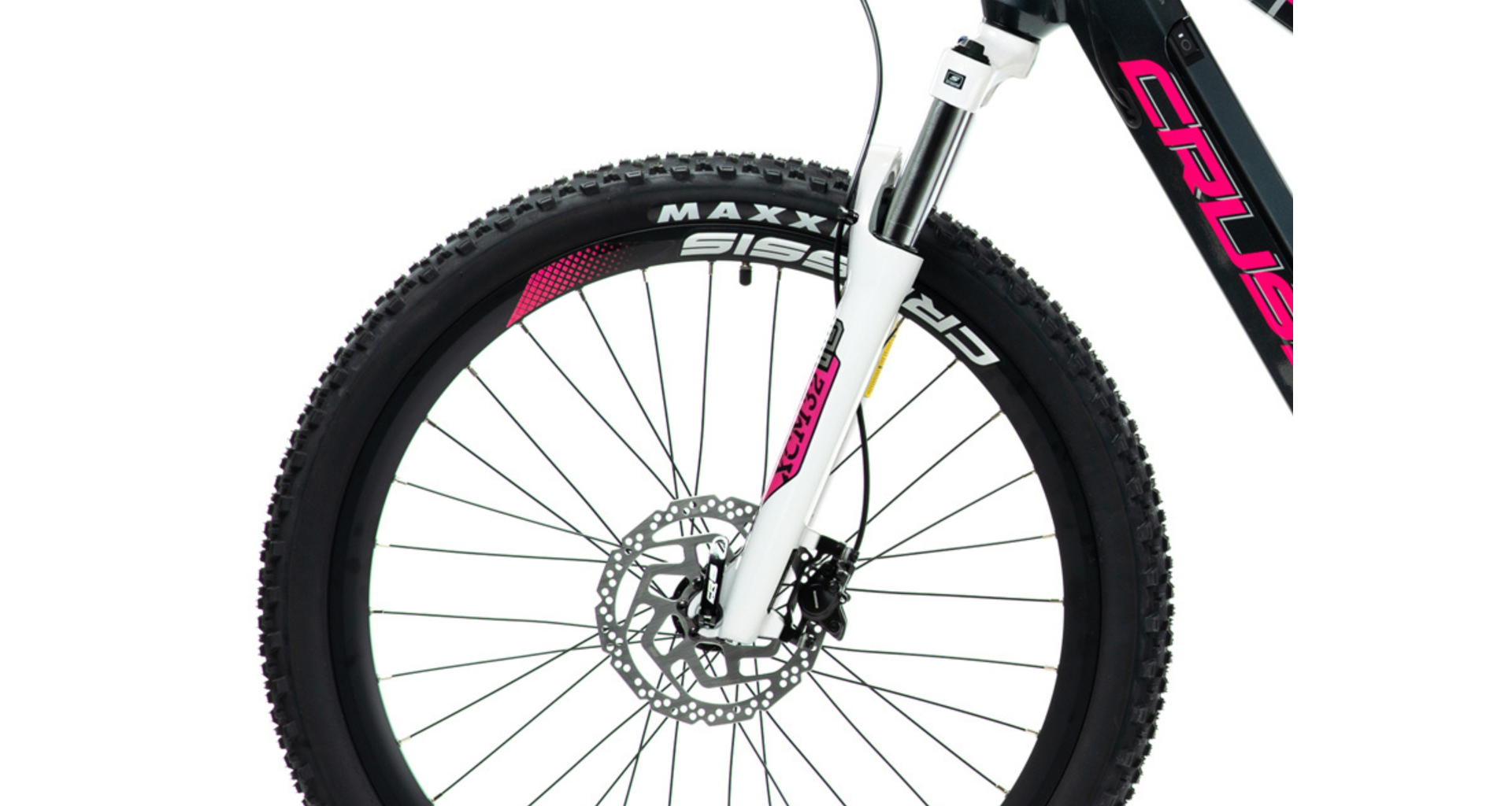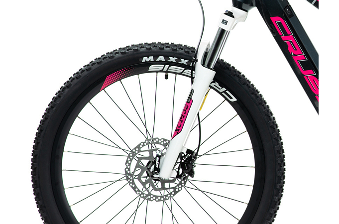 Komfort zajišťuje vyladěná geometrie a také bohatá základní výbava s odpruženou vidlicí s pružinovým tlumením, kotoučovými brzdami a stabilními 27,5“ zapletenými koly.