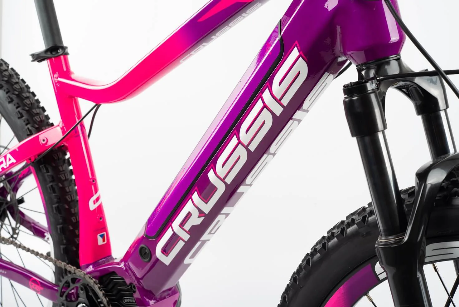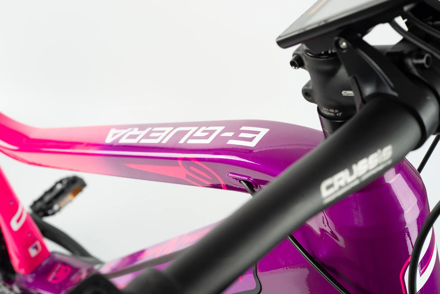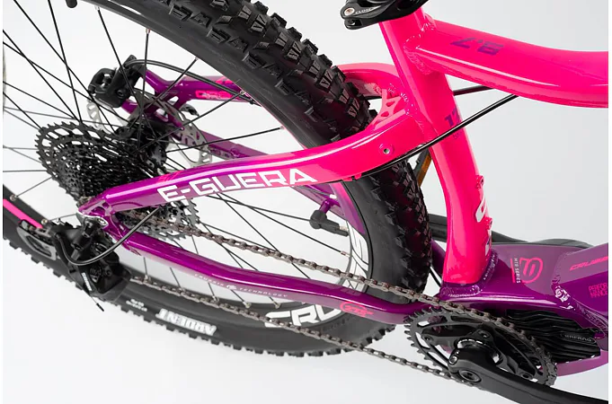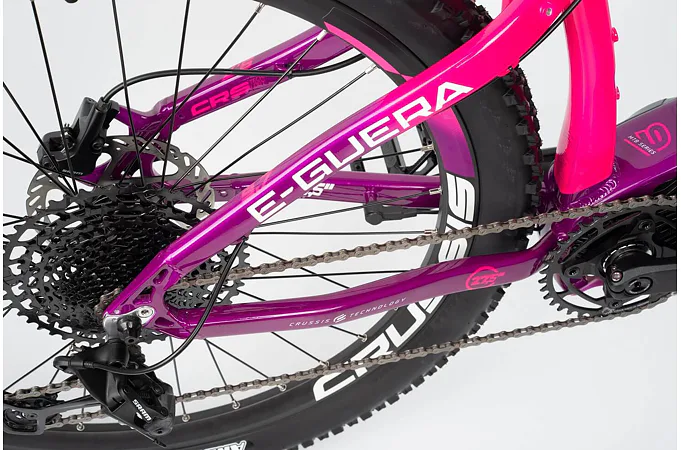 Model CRUSSIS e-Guera 9.7 patří mezi oblíbená horská elektrokola značky CRUSSIS určené především pro dámy! Vyniká především svoji integrovanou baterii přímo v rámu, takže není nijak narušený design kola a zajišťuje maximální komfort a ovladatelnost při jízdě jak v nízké, tak i vysoké rychlosti. Kapacita baterie se liší dle zvolené varianty – S (17,5 Ah) nebo M (20 Ah).