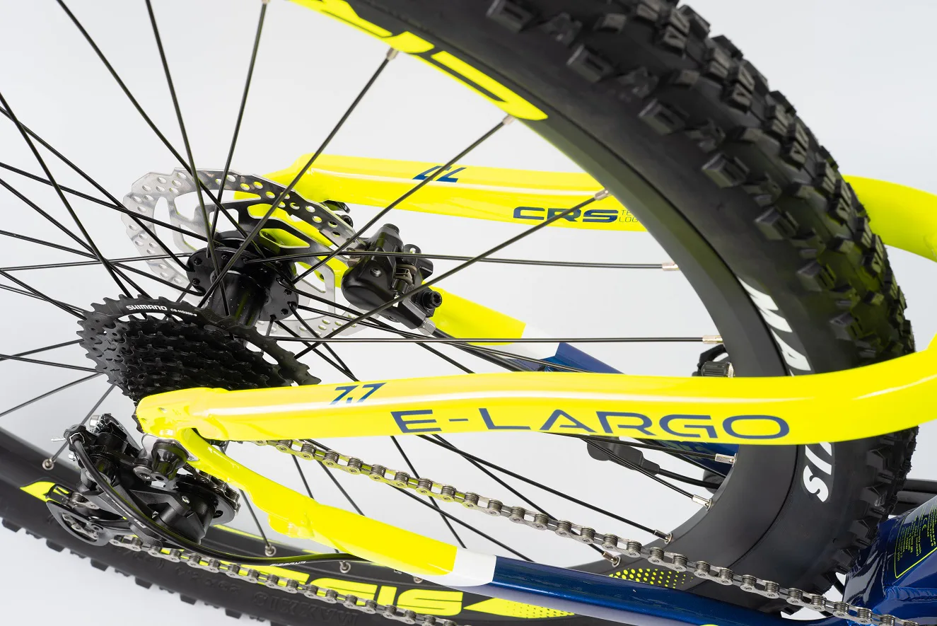 Model CRUSSIS e-Largo 7.7 patří mezi oblíbená horská elektrokola značky CRUSSIS určené především pro pány! Vyniká především svoji integrovanou baterii přímo v rámu, takže není nijak narušený design kola a zajišťuje maximální komfort a ovladatelnost při jízdě jak v nízké, tak i vysoké rychlosti. Kapacita baterie se liší dle zvolené varianty – základní (14,5 Ah) nebo S (17,5 Ah), M (20 Ah), L (25 Ah).