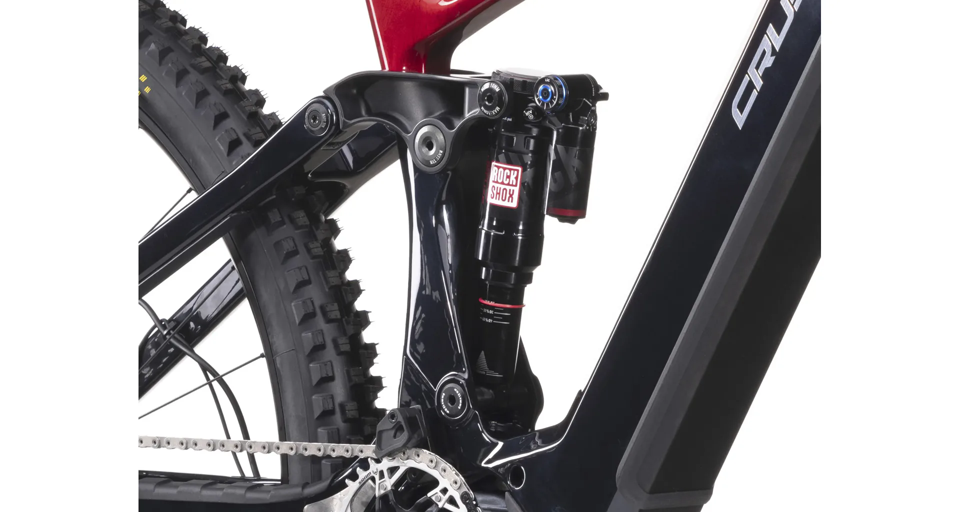 - karbonový rám se sportovně střiženou geometrií a plně integrovanou baterií v rámu