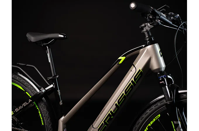 Model Crussis e-Savela 7.8 patří mezi oblíbená treková elektrokola značky Crussis. Vyniká integrovanou baterií přímo v rámu, takže není nijak narušený design kola a zajišťuje maximální komfort a ovladatelnost při jízdě jak v nízké, tak i vysoké rychlosti. Kapacita baterie se liší dle zvolené varianty – základní (14,5 Ah) nebo S (17,5 Ah), M (20 Ah).
