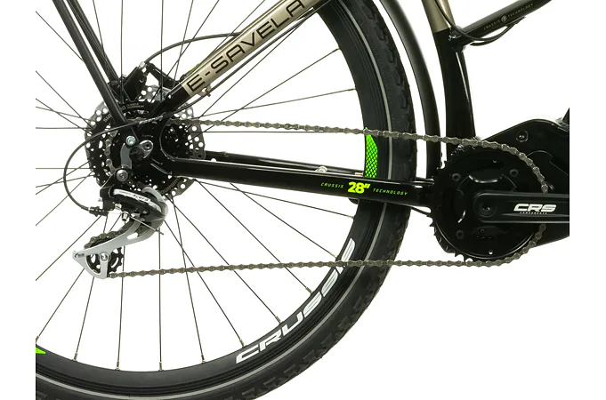 Model Crussis e-Savela 7.9 patří mezi oblíbená treková elektrokola. Vyniká integrovanou baterií přímo v rámu, takže není nijak narušený design kola a zajišťuje maximální komfort a ovladatelnost při jízdě jak v nízké, tak i vysoké rychlosti. Kapacita baterie se liší dle zvolené varianty – XS (14,5 Ah) nebo M (20 Ah).