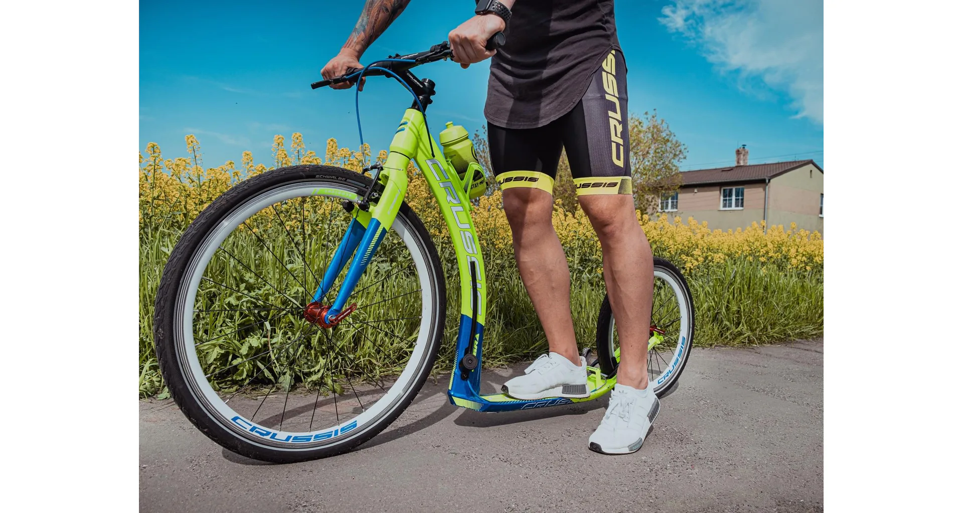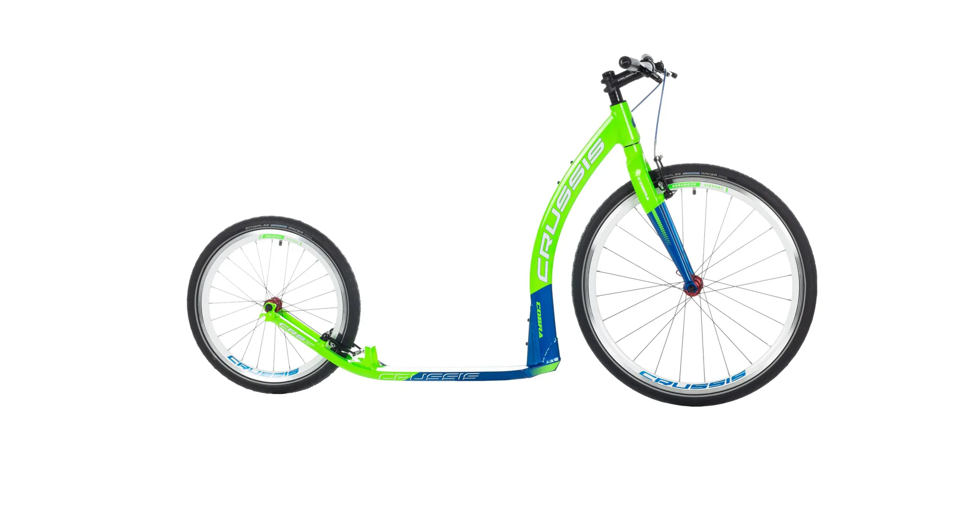 Unikátní hliníkový rám koloběžek Crussis Cobra byl vyvinut tak, aby se zadní vidlicí tvořil jeden celek. To eliminuje únavové lomy v místech, kde je vidlice ke stupátku obvykle přivařena. Kónický tvar hlavové trubky spolu s trojúhelníkovým profilem krku zvyšuje pevnost rámu.