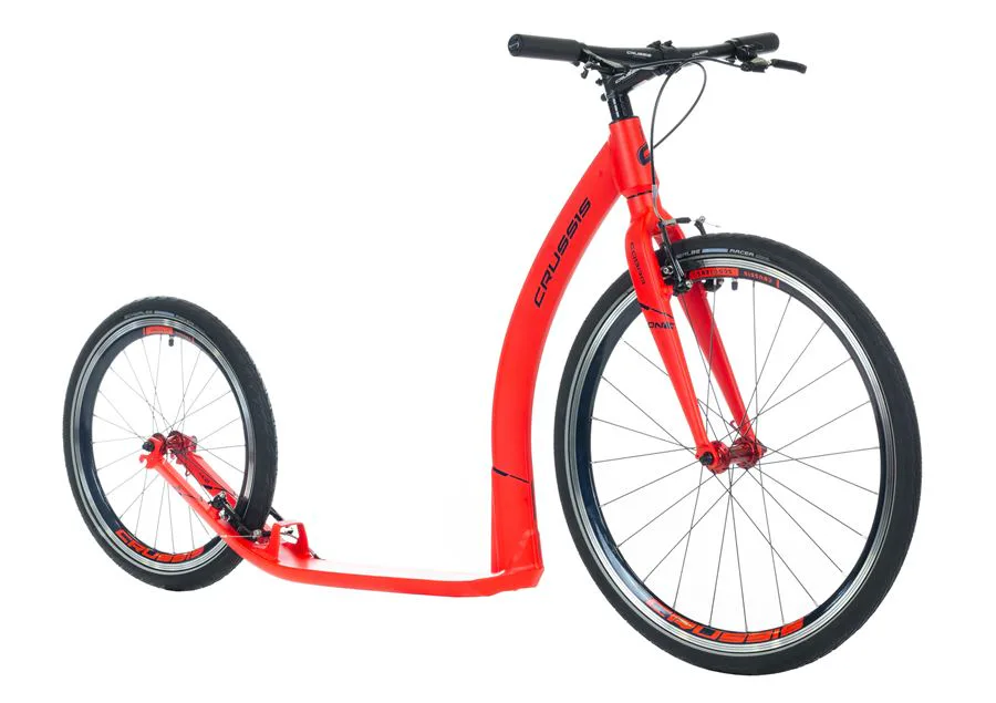 Unikátní hliníkový rám koloběžek Crussis Cobra byl vyvinut tak, aby se zadní vidlicí tvořil jeden celek. To eliminuje únavové lomy v místech, kde je vidlice ke stupátku obvykle přivařena. Kónický tvar hlavové trubky spolu s trojúhelníkovým profilem krku zvyšuje pevnost rámu.