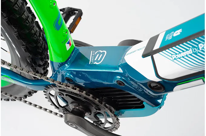 Motor je umístěn ve středové části rámu, díky tomu jsou zajištěny maximálně dobré manipulační schopnosti s kolem a komfortní jízda a sportovní vzhled.