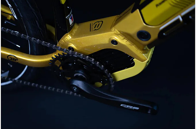 Motor je umístěn ve středové části rámu, díky tomu jsou zajištěny maximálně dobré manipulační schopnosti s kolem a komfortní jízda a sportovní vzhled.