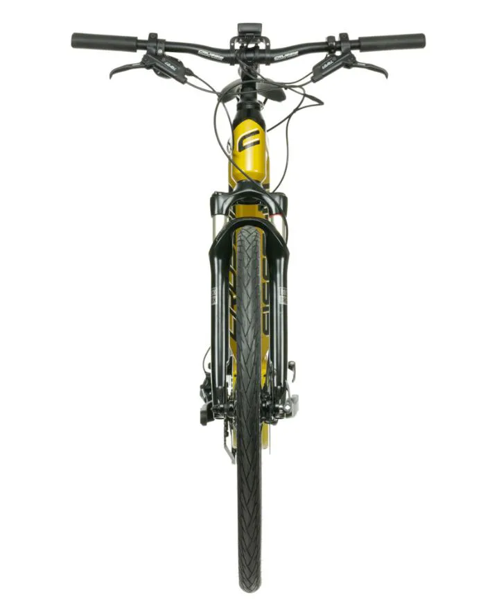 Komfort zajišťuje vyladěná geometrie a také bohatá základní výbava s odpruženou vidlicí se vzduchovým tlumením, kotoučovými brzdami a stabilními 28“ zapletenými koly.