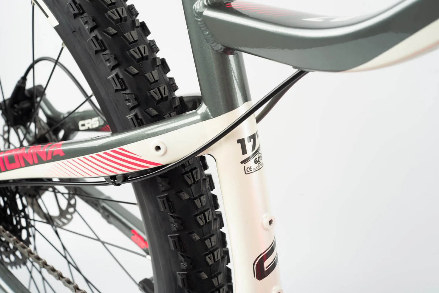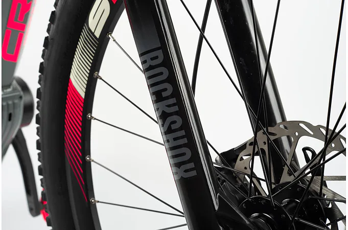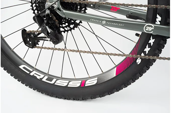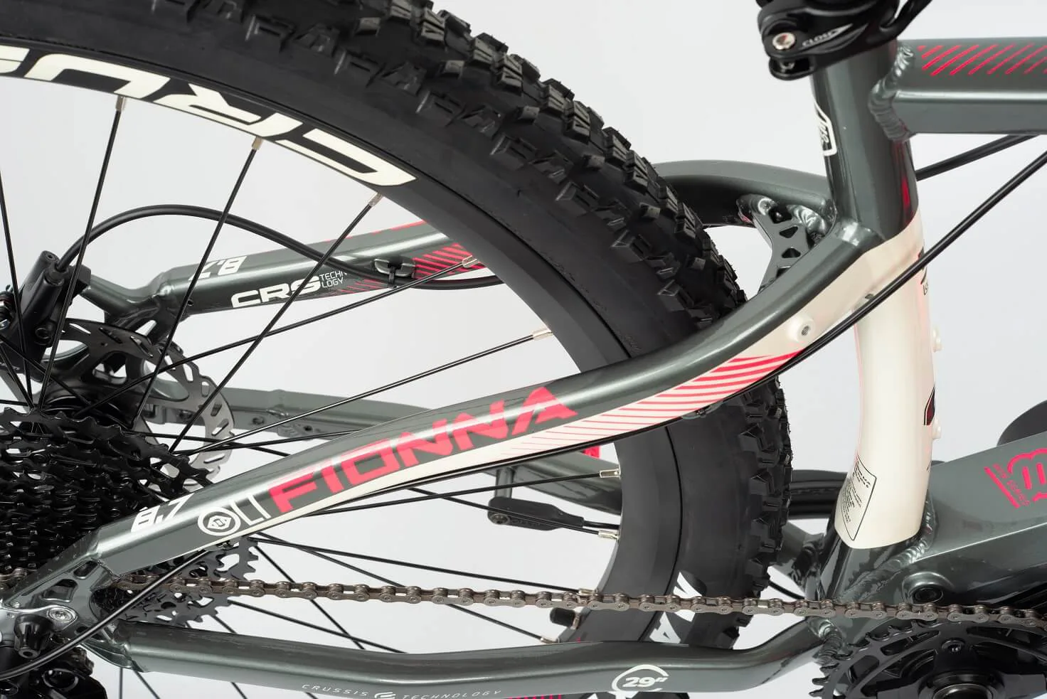 CRUSSIS OLI Fionna 8.7 je vybaveno odpruženou vidlicí s pružinovým tlumením ROCKSHOX FS Judy Silver TK Solo Air 29" se zdvihem 100 mm, která je skvěle přizpůsobivá váze cyklisty.