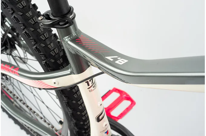 Komfort zajišťuje vyladěná geometrie a také bohatá základní výbava s odpruženou vidlicí s pružinovým tlumením, kotoučovými brzdami a stabilními 29“ zapletenými koly.
