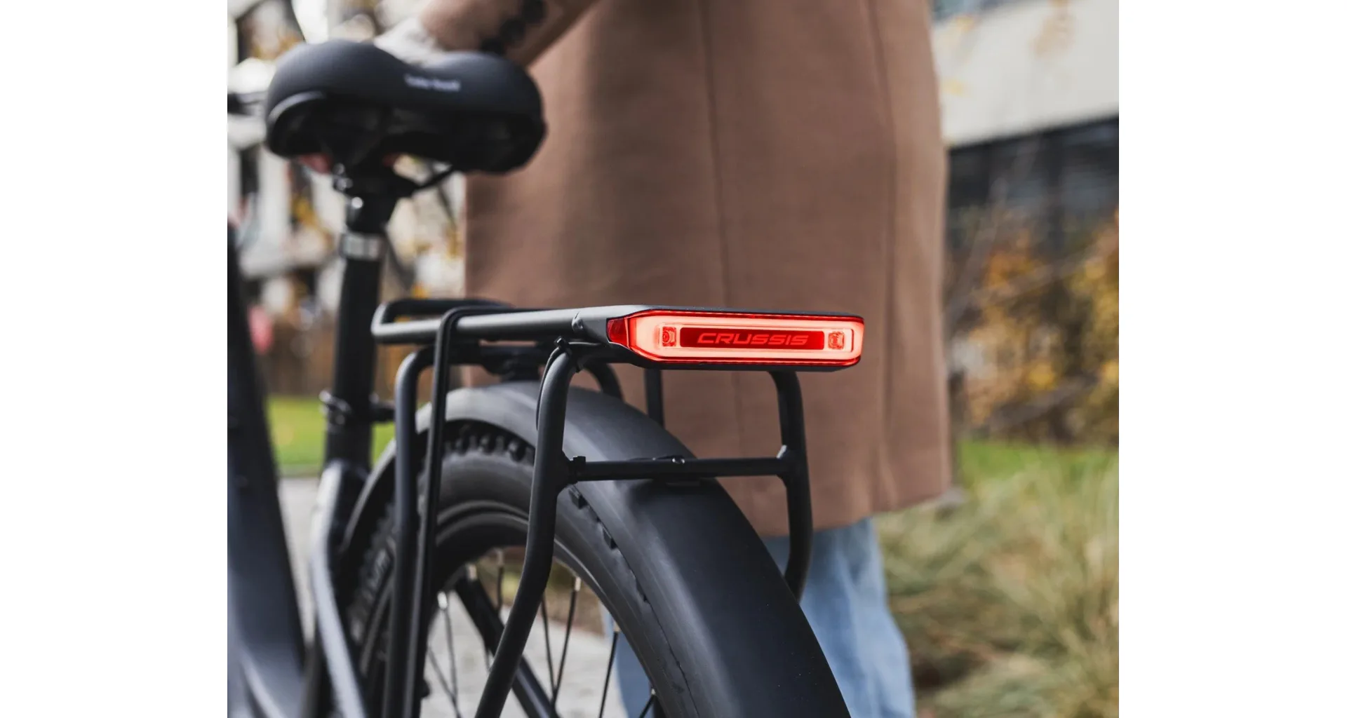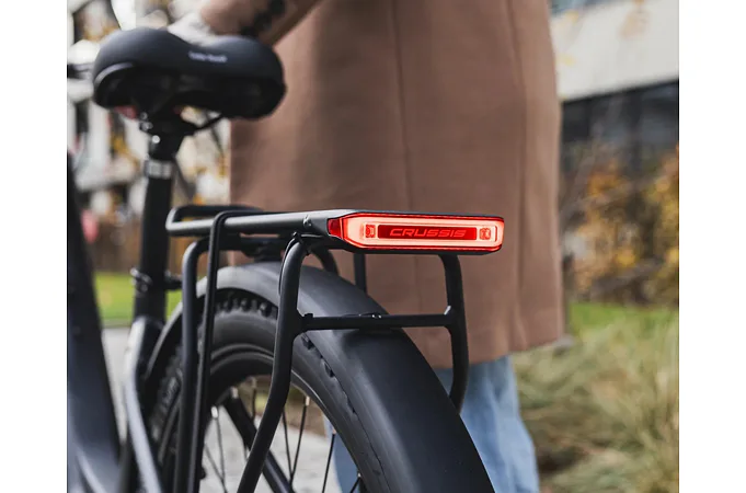 Zadní světlo je napájeno z baterie a ovládáno přímo z řídítek elektrokola.