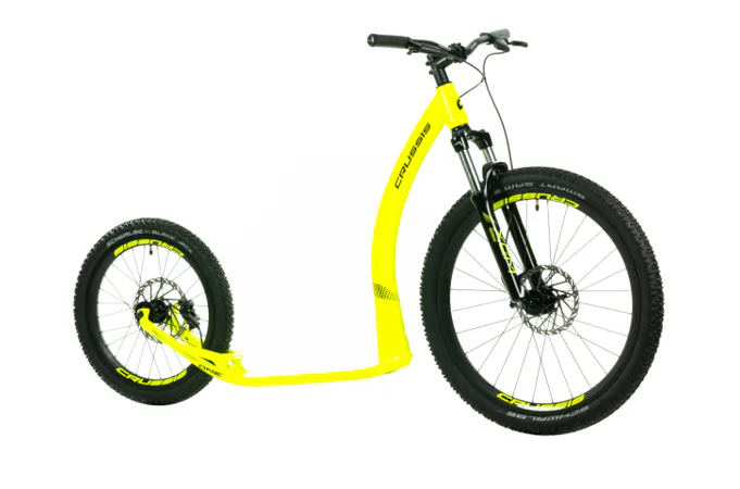 Koloběžka pro dospělé Crussis ONE CROSS 6.2-1 je lehká hliníková koloběžka s velkými nafukovacími koly a odpruženou vidlicí. Skvělá do do náročnějšího terénu na sjezdy či akční jízdu se psem.