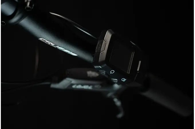 Nedílnou součástí e-biku je středový LCD displej Panasonic s dálkovým ovladačem z řídítek na levé straně.