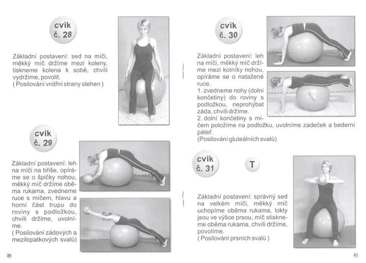 Cvičenie pre zdravie je vynikajúca, prehľadná a zrozumiteľná príručka pre všetkých, čo sa chcú hýbať a robiť tak niečo prospešné pre svoje zdravie. Príručka Cvičenie pre zdravie Vám odporučí cviky vhodné na udržanie fyzickej kondície, zlepšenie postavy a pretiahnutie pohybového aparátu. Publikácia osvetlí základné informácie ohľadom výberu vhodnej veľkej lopty a správneho posedenia na nej. Nasleduje prehľad cvikov s podrobným popisom a niekoľkými obrázkami ku každému z nich. Konkrétne sa jedná o 26 cvikov s veľkou loptou (+ 5 v kombinácii s malou loptou, 8 s gumou a 6 s medicinballom) a 13 cvikov iba s malou loptou.