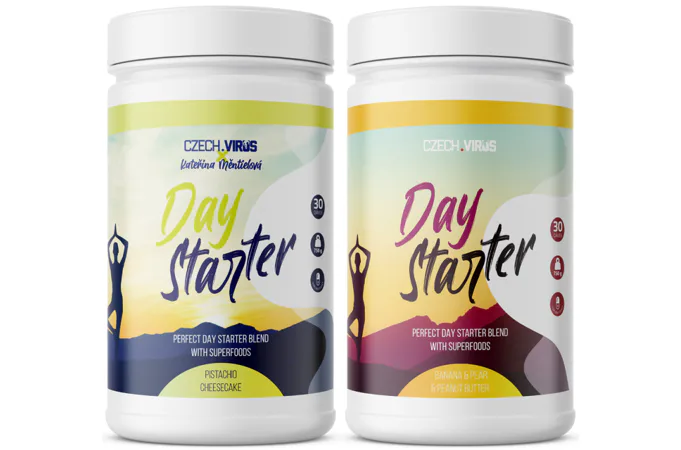 Zmes je obohatená o skvelú zelenú zmes, ktorú poznáte z best-selleru Super Greens PRO V2.0 (spirulina, chlorela, mladý jačmeň a mladá pšenica) vrátane V-AntiOxi-Blend® (zmes antioxidantov), V-Shrooms-Blend® ( zmes húb) a V-Dige-Blend® (zmes tráviacich enzýmov). Czech Virus Day Starter je skrátka komplexné raňajky plné živín, pre ten najlepší začiatok dňa.