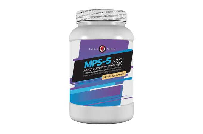 MPS-5 PRO je vysoko kvalitný proteín zložený z 5-tich rôznych zdrojov bielkovín. Najväčšiu časť tvorí srvátkový koncentrát spracovaný metódou CFM (Cross-Flow Microfiltration) a natívny mliečny proteín (zdroj micelárneho kazeínu). Zvyšok tvorí zmes CFM srvátkového izolátu, hydrolyzovaný (naštiepený) srvátkový koncentrát a vaječný albumín. Zloženie reflektuje aktuálne štúdie na najideálnejšie zloženie proteínu kvôli maximálnemu anabolizmu. To všetko navyše dopĺňajú enzýmy Tolerase™ L, Papaín a Bromelaín, kvôli maximálnemu využitiu bielkoviny a štiepeniu laktózy.