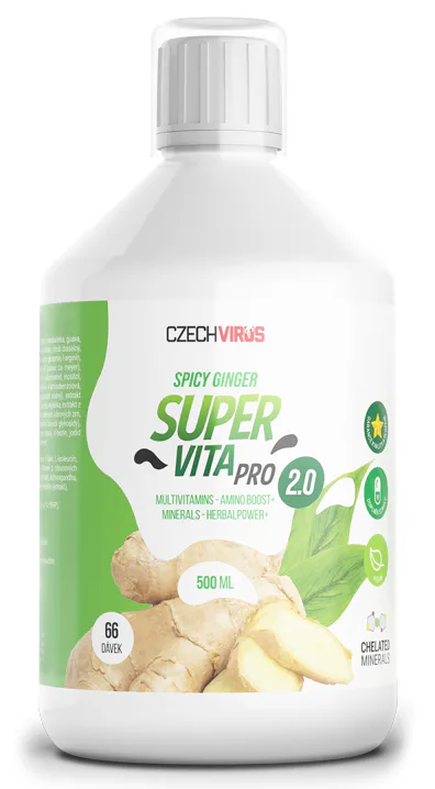 SuperVitu PRO V2.0 sme stavali na pevných základoch pôvodného produktu s využitím nových skúseností a látok, ktoré produkt znateľne inovujú. SuperVita je tvorená tak, aby ponúkala All-in-one produkt pre čo najširšie pokrytie potrieb vitamínov a minerálov, dômyselne doplnená rastlinnými extraktmi. Jej účinky môžu využívať ako amatérski športovci, tak profesionáli - výhodou tekutej formy je dávkovanie, ktoré si môžete úplne ľubovoľne upraviť podľa svojich potrieb. Pokiaľ užívate produkty, ktoré niektoré látky obsahujú, upravíte si množstvo a máte narposto perfektnú kombináciu, ktorú nie je možné dosiahnuť kapsulou alebo tabletou s spojivami. Veríme, že je SuperVita PRO V2.0 úplnou špičkou na trhu a stane sa veľmi skoro vašou jasnou voľbou pri výbere multivitamínových prípravkov. Originálna receptúra od Czech Virus.