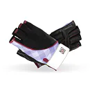Vysoko funkčné dámske rukavice zaujmú originálnym dizajnom - ten spája čiernu časť rukavíc s červeným prešitím, bielym zapínaním so svetlofialovou časťou zdobenou geometrickými vzormi. Dámske rukavice sú určené všetkým ženám, ktoré pri cvičení vyžadujú nielen spoľahlivého parťáka v podobe rukavíc, ale zaujímajú ich aj aktuálne trendy.