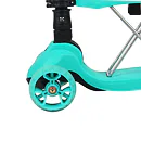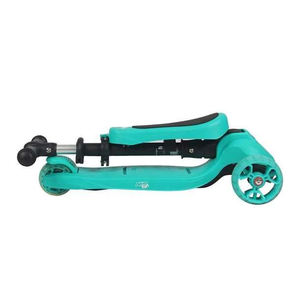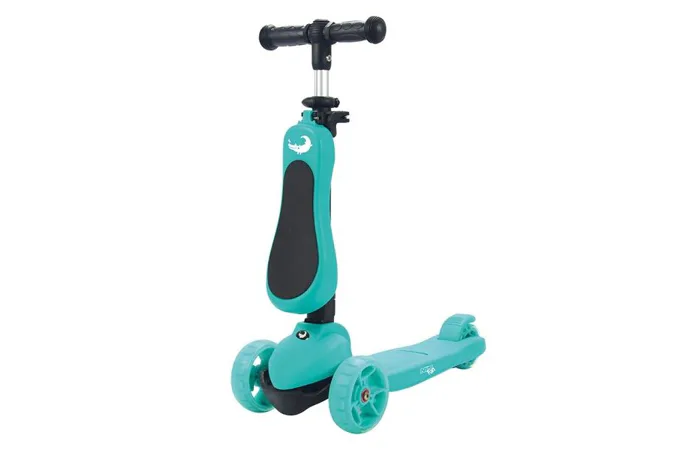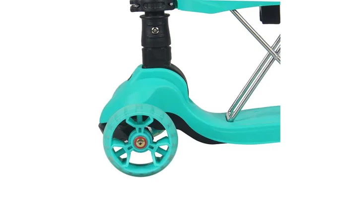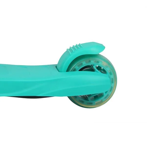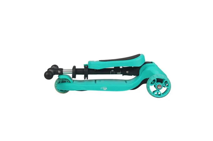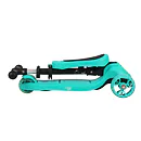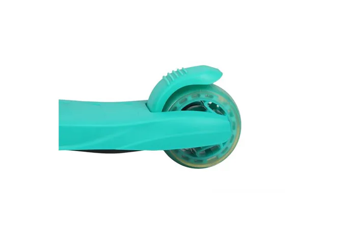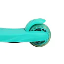 Všetky kolieska v sebe majú ukryté LED diódy, ktoré sa pri pohybe rozsvietia, široké zadné koliesko zvyšuje stabilitu kolobežky. Riadidlá je možné výškovo nastaviť v rozmedzí 63 - 80 centimetrov.