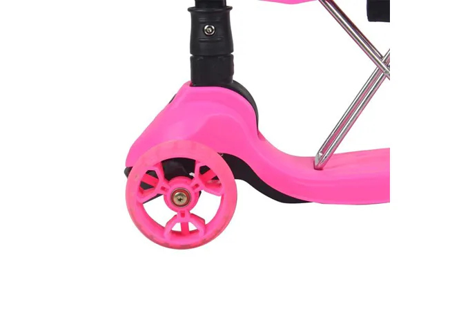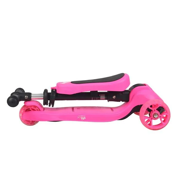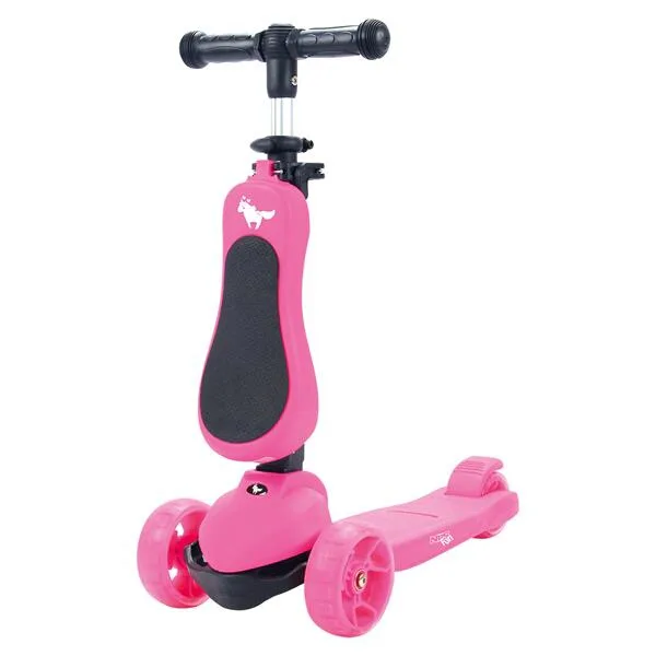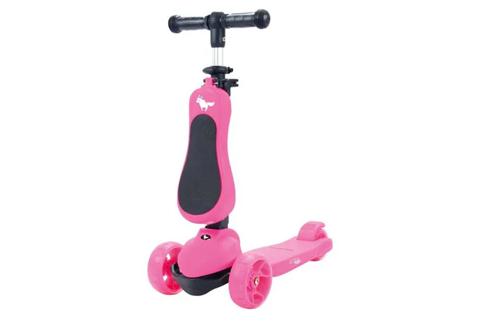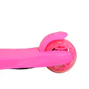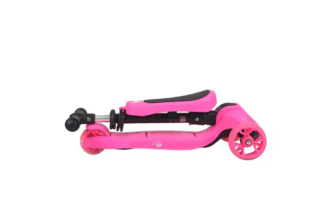Všetky kolieska v sebe majú ukryté LED diódy, ktoré sa pri pohybe rozsvietia, široké zdanie koliesko zvyšuje stabilitu kolobežky. Riadidlá je možné výškovo nastaviť v rozmedzí 63 – 80 centimetrov.