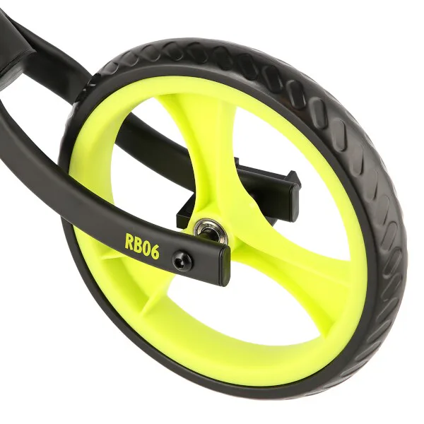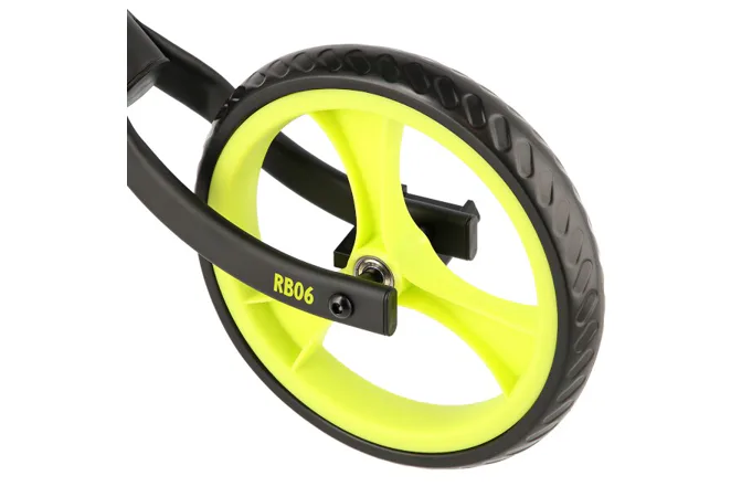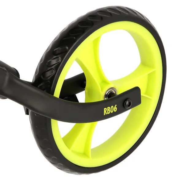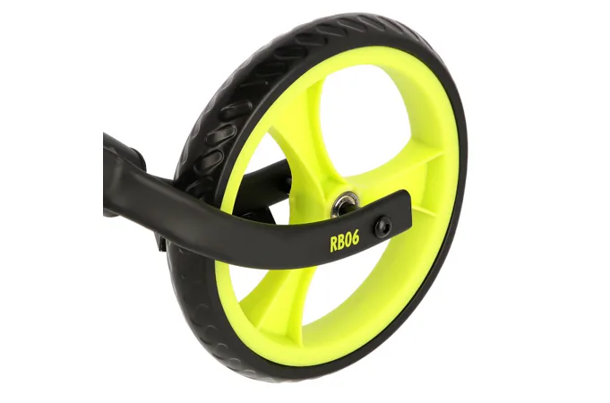 Konštrukcia RB06 je vyrobená z kvalitnej, lakovanej ocele. Pre maximálnu bezpečnosť sú všetky hrany zaoblené. Rukoväte sú osadené gripy s golierom na oboch stranách, ktorý zamedzuje skĺznutiu dlane. Stredové zloženie je vybavené zarážkou, ktorá zamedzuje pretočeniu riadidiel. Plastové kolesá sú osadené 9", plnou pneumatikou, ktorá sa nedá preraziť. Ložiská ABEC 9 zaručujú plynulú jazdu. Riadidlá a sedlo sú výškovo nastaviteľné.