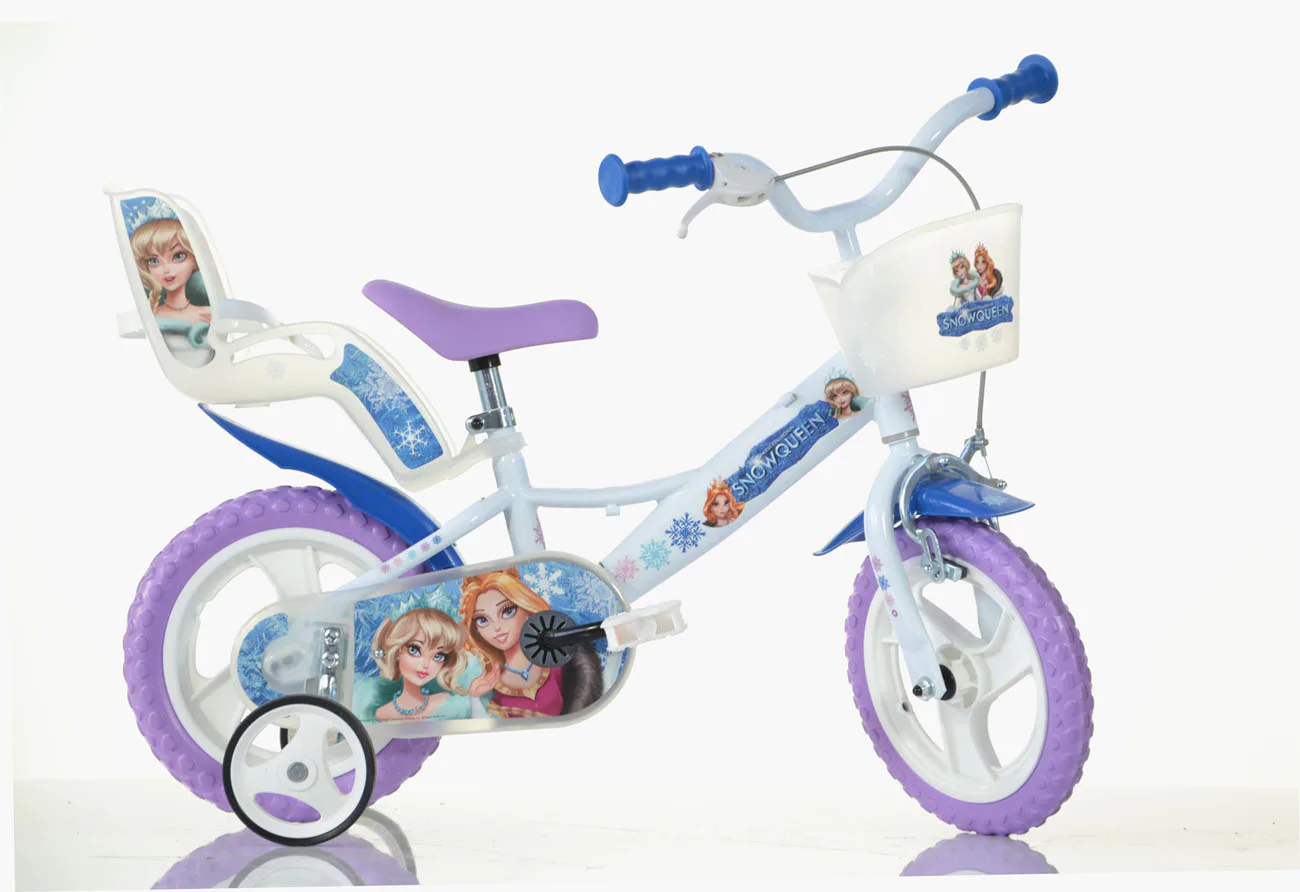 Detský bicykel Dino Bikes 124GLN SNOW QUEEN s licenčnou potlačou SNOW QUEEN PHOTOGRAPH sa vyznačuje prepracovaným dizajnom dávajúcim bicyklu efektný vzhľad.