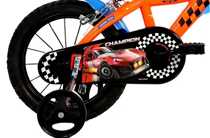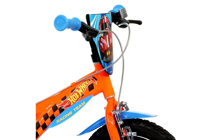 Detský bicykel Dino Bikes s potlačou HOT WHEELS sa vyznačuje prepracovaným dizajnom dávajúcim kolesu ľúbivý vzhľad.