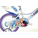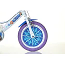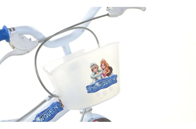 Detský bicykel Dino Bikes 144GLN SNOW QUEEN má plastové ráfiky 14" (palcov = 36,5 cm), nafukovacie plášte, voľnobeh a je vybavený prednou aj zadnou čeľusťovou brzdou.